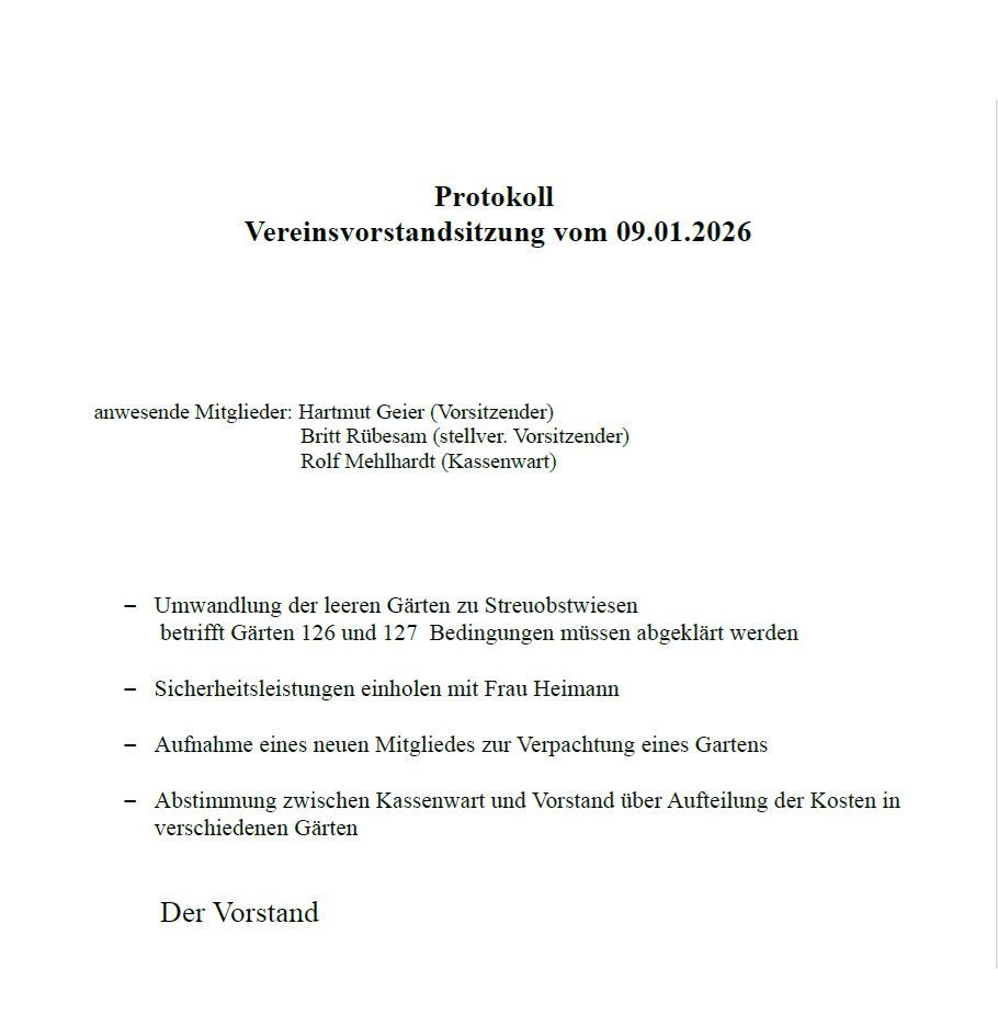 Vorstandssitzung 29.05. 2025 Aushang